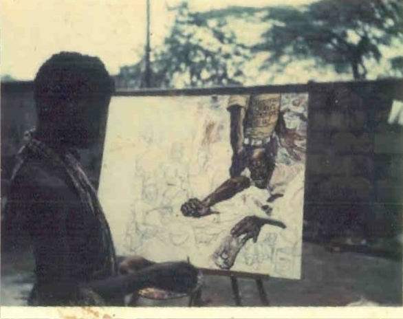 Nigerian-born and raised, Lemi was a young artist who had not followed his father's aspirations for him to become a mechanical engineer and instead pursued the love of drawing that got him scolded in math classes. For Lemi, 1974 was a monumental year that helped him find who he would eventually become. Though he disavowed the effectiveness of new-years’ resolutions, Lemi committed himself to drawing one complete drawing a day for each day of 1974. Drawing anything from nature scenes and commissioned portraits to striking renditions of Kung Fu heroes such as Bruce Lee, whose movies were popular in the 70s in Nigeria, Lemi caught his break when a piece he had done of Lee caught the eye of Babatunde Harrison, a journalist who worked with Fela Kuti. Harrison commissioned Lemi to do a portrait album cover for Fela's "Roforofo Fight'' as a test, and when Fela saw it, their relationship began in earnest.